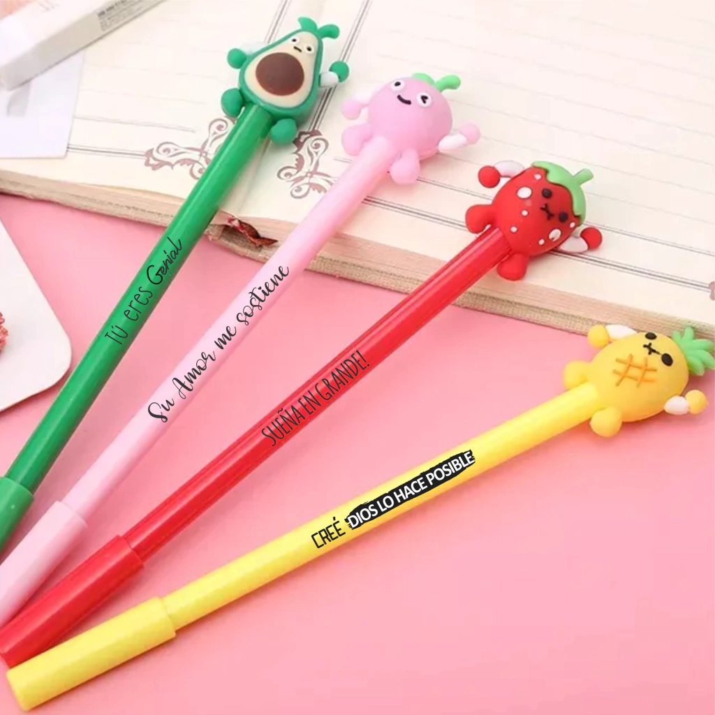 • Paquete de 12 bolígrafos roller con forma de frutas novedosas de 12 piezas para una escritura suave, 4 colores, 3 piezas por diseño